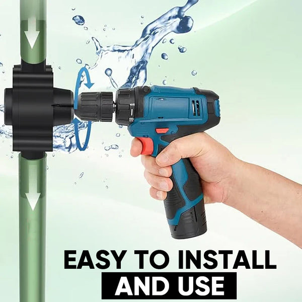 Diseñada para funcionar sin una fuente de alimentación, esta bomba de taladro autocebante funciona con taladros con cable e inalámbricos