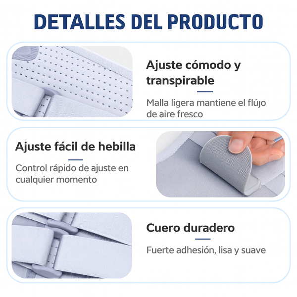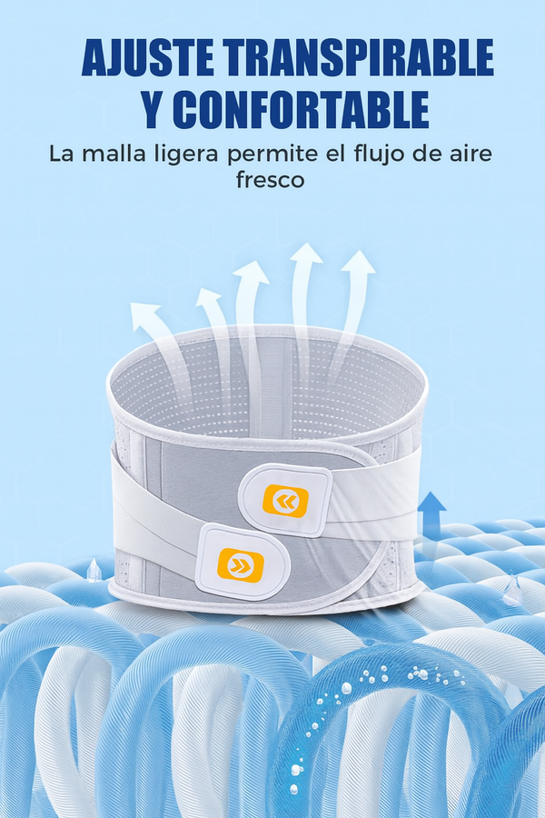 Fabricado con malla altamente flexible y transpirable, este cinturón te mantiene fresco y cómodo. A diferencia de otras alternativas voluminosas, su material ligero te permite llevarlo discretamente debajo de la ropa sin sobrecalentarte ni causarte molestias.