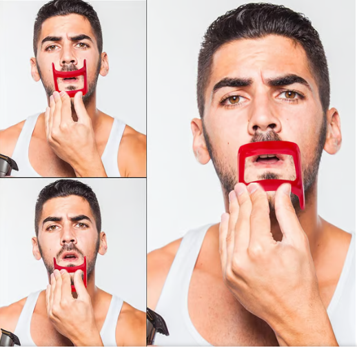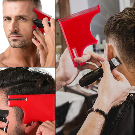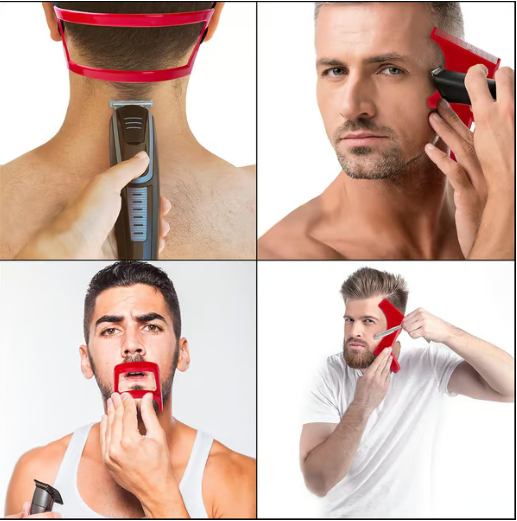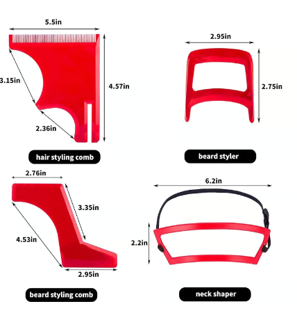 Este kit de herramientas para dar forma a la barba y cortar el cabello viene con cuatro herramientas que incluyen una herramienta para dar forma a la barba, una guía de plantilla para el escote, una plantilla para la línea del cabello y una plantilla para recortar el bigote.