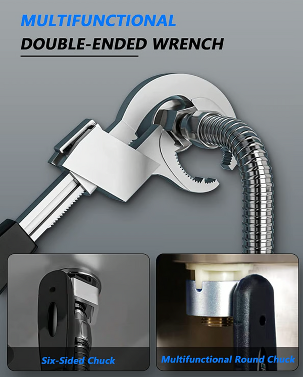 Llave universal para grifos de baño, lavabos, llaves ajustables de gran apertura y herramienta especial de reparación. Nuestra llave universal para tubos puede resolver el 99% de los problemas de desmontaje y montaje de sanitarios. ¡No es solo una llave para baño, es una llave para lavabo! Ideal para trabajar rápida y fácilmente en espacios estrechos y pequeños.
