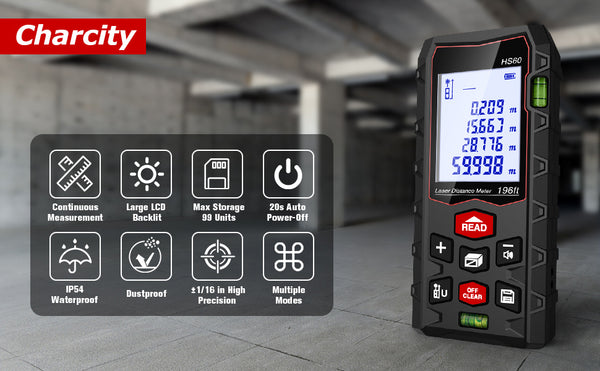 ¡Di adiós a la cinta métrica convencional y mide con rapidez y exactitud hasta 60 metros (196 pies)!