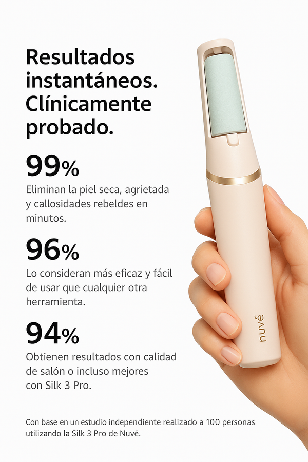 ¿Cansado de las piedras pómez lentas, las limas dolorosas o los salones de belleza caros? Nuvé Silk 3 Pro es para ti.