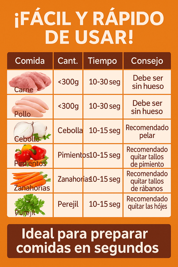 Equipo para alimentos duros: ideal para nueces, carne, zanahorias, frijoles y otros ingredientes duros.