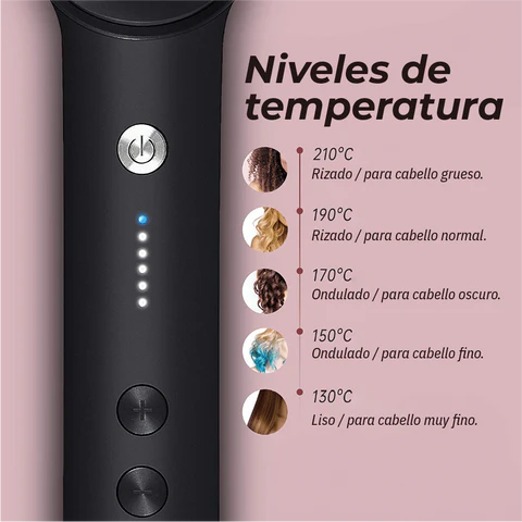 Con sus 5 configuraciones de temperatura, desde suave y liso, hasta grueso y rizado, encontrarás el nivel perfecto para tu tipo de cabello.