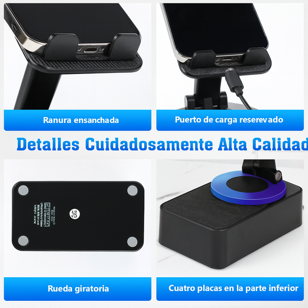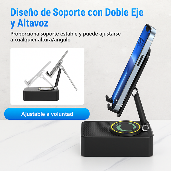Equipado con controladores duales de 3 W y un radiador de graves incorporado, este soporte mejora el audio de su teléfono a un estéreo rico y envolvente, ideal para música, películas y podcasts.